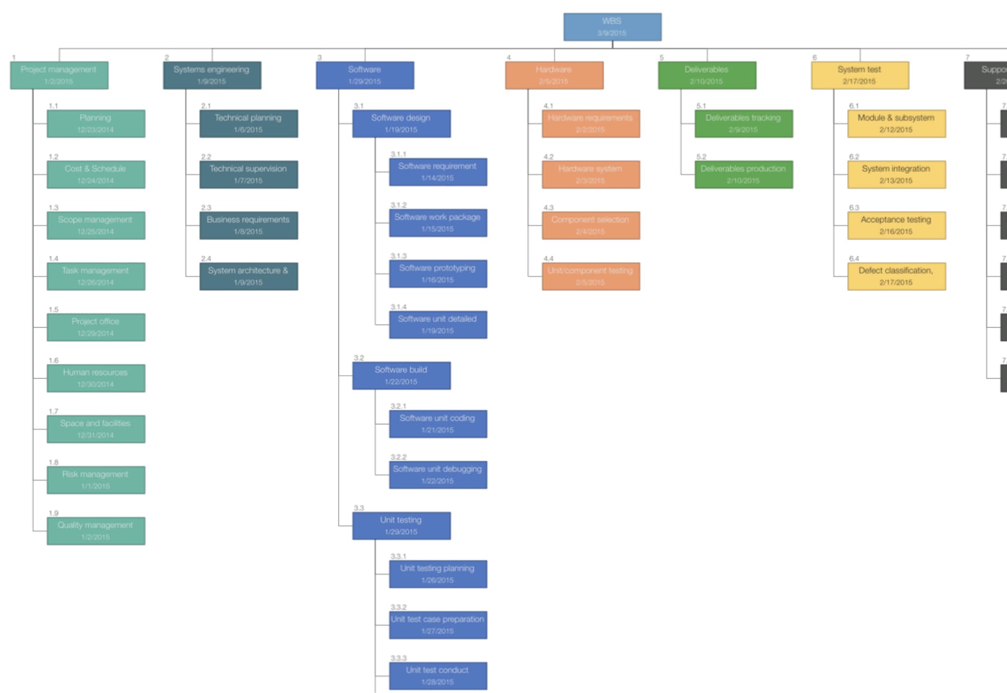 WBS is a hierarchical, incremental decomposition of a project into phases, deliverables, and work packages. It is a tree structure showing the subdivision of effort required to achieve an objective, such as a program, project, or contract.