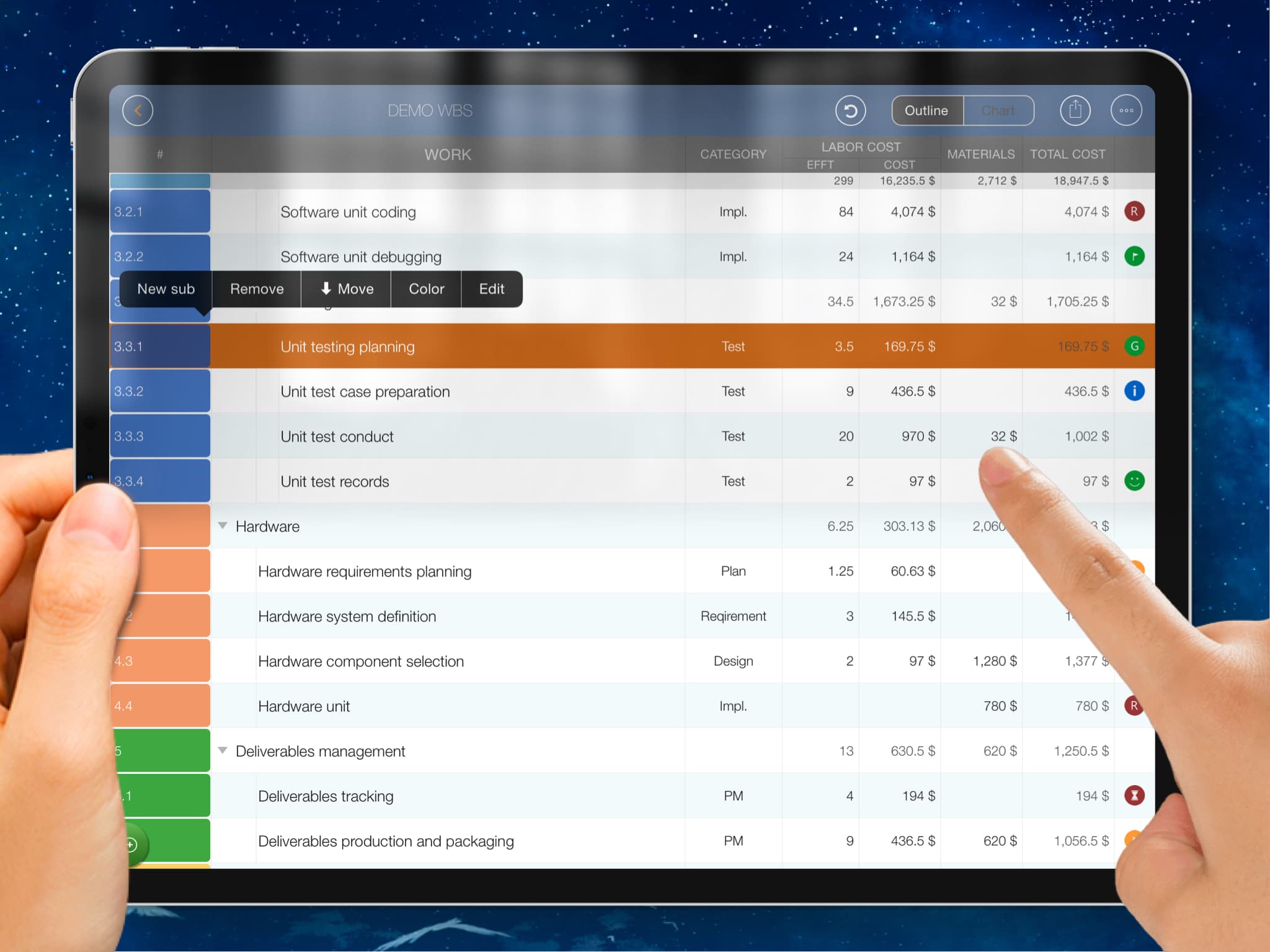 Natural gestures on a clean interface make WBS maintenance more straightforward, faster, and more efficient than ever.